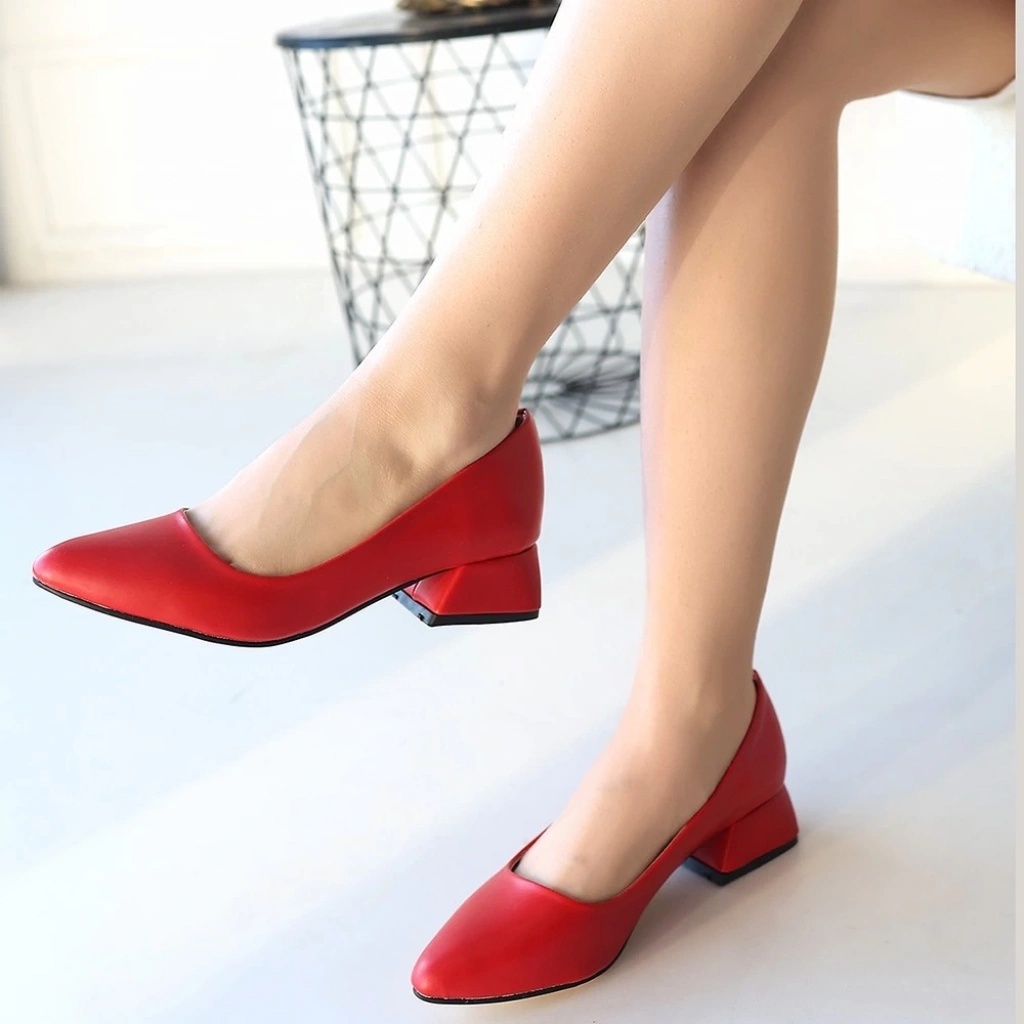 Desniy Kırmızı Cilt Topuklu Ayakkabı