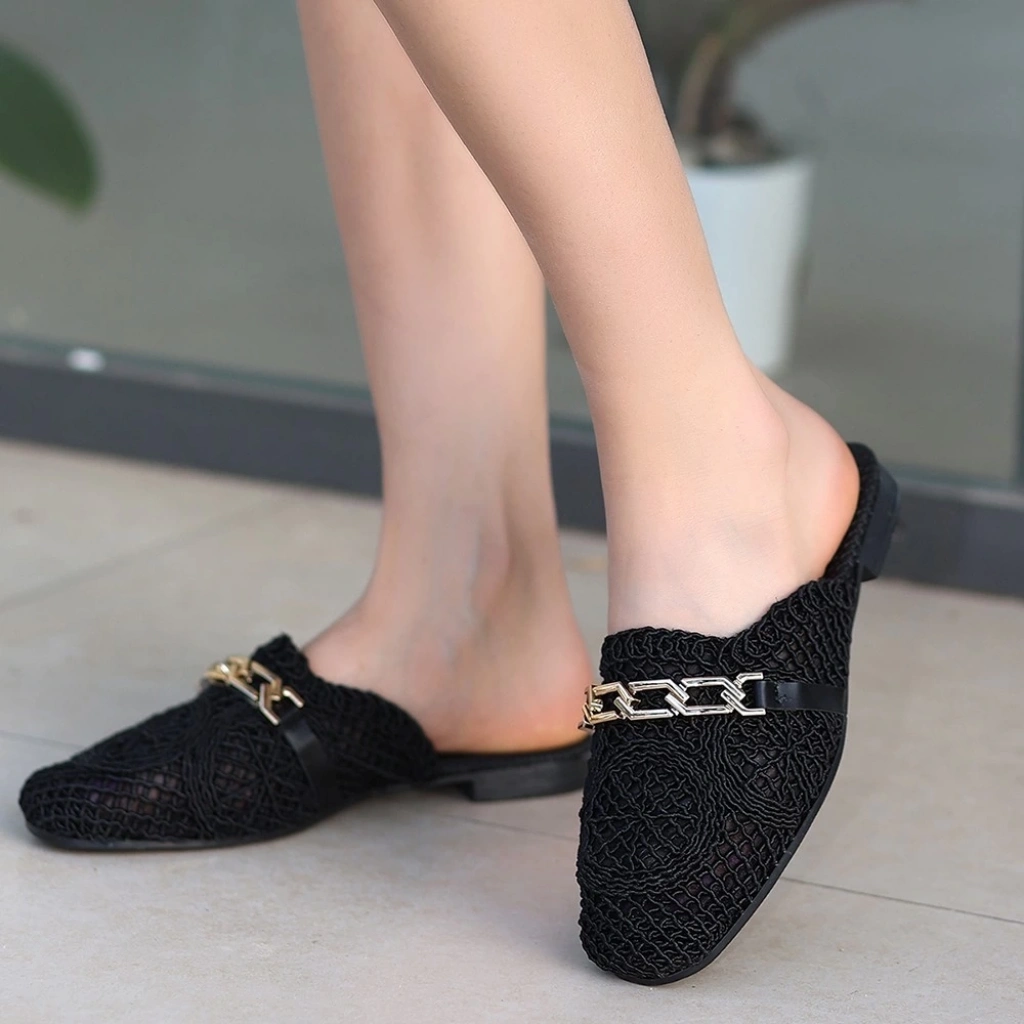 • Emert Siyah Örgülü Terlik