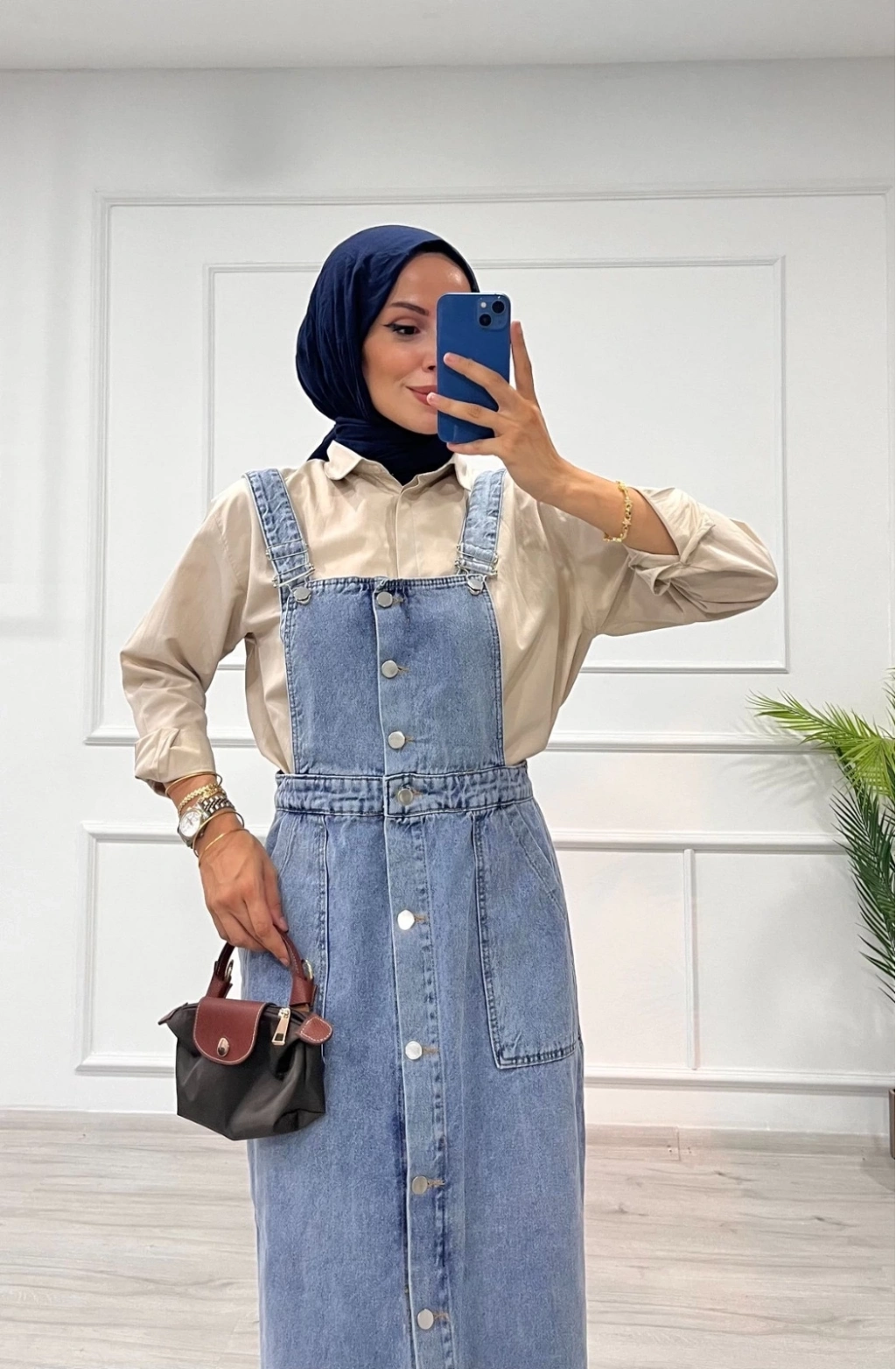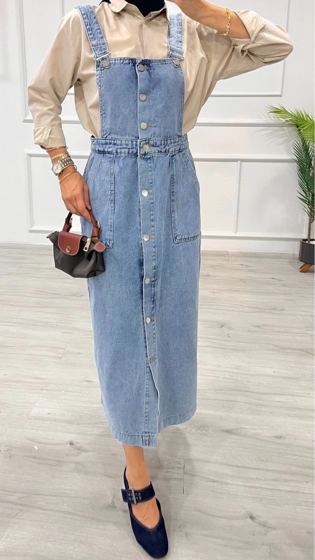 Etekli salopet, son moda parçalar arasında yerini alıyor. Enzim süper taş yıkama tekniğiyle hazırlanan bu etekli salopet, şıklığı ve rahatlığı bir arada sunuyor. Buz mavisi rengiyle dikkat çeken bu model, gardırobunuzun vazgeçilmezi olmaya aday.