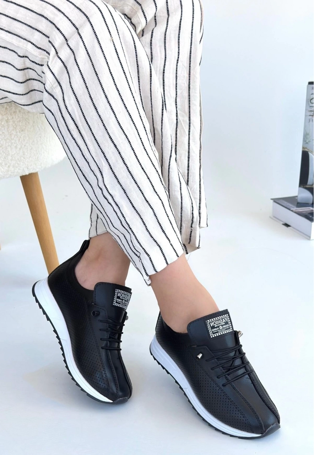 Fiert Siyah Cilt Bağcıklı Spor Ayakkabı