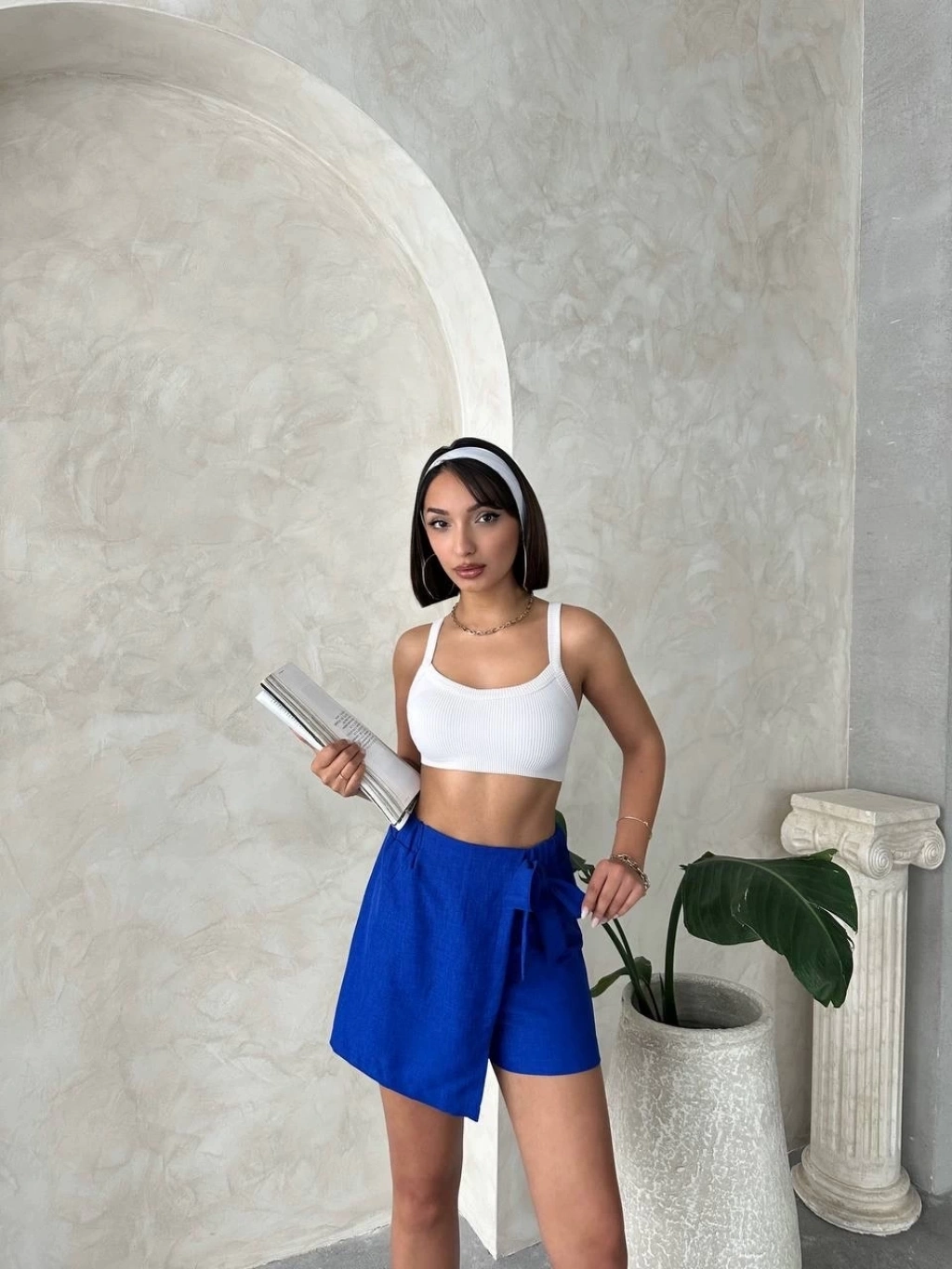 Fiyonklu Şort Etek Saks S255021 ile hem günlük hayatta hem de özel günlerde tarzınızı yansıtabilirsiniz. Şıklık ve konfor arayan kadınların favorisi olmaya aday!