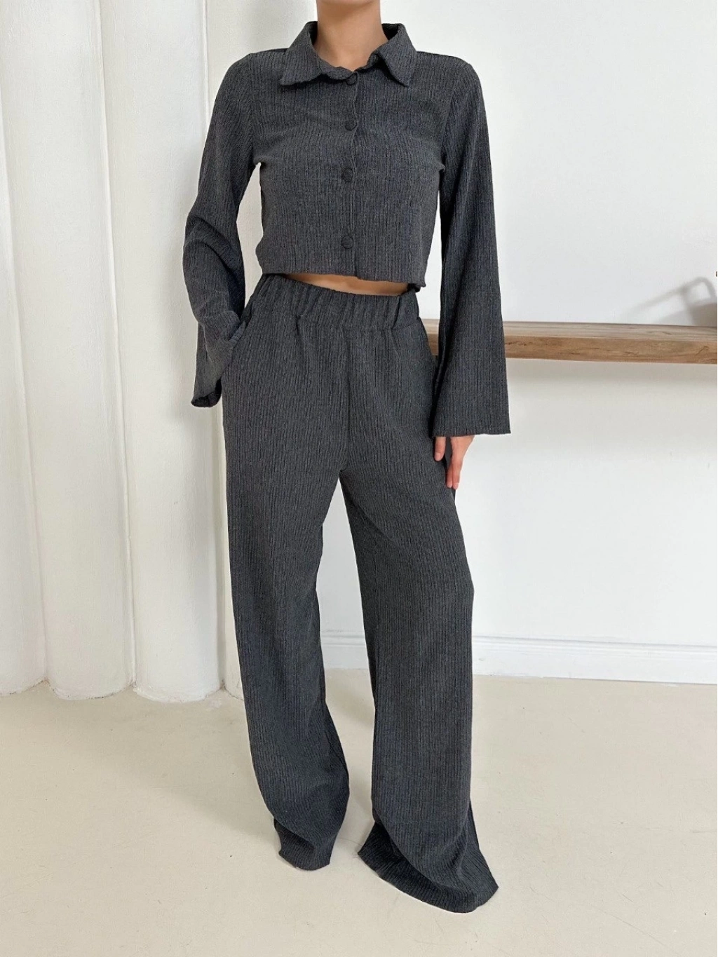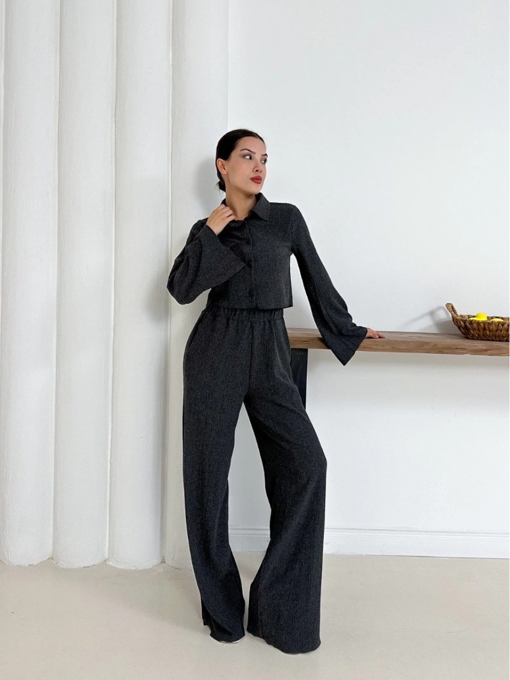 Gömlek yaka kaplama düğmeli takım antrasit st265866