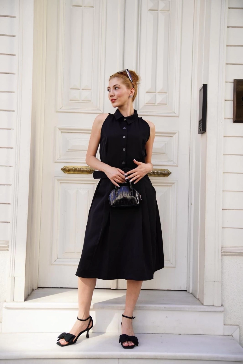 Gömlek yaka kemerli siyah elbise, gardırobunuzun vazgeçilmez parçası olmaya aday! Zarif tasarımıyla dikkat çeken bu elbise, şıklığı ve rahatlığı bir arada sunuyor. %100 pamuklu kumaşı sayesinde gün boyu konforu garantilerken, belindeki kemer detayıyla da feminen bir görünüm sağlıyor. Hem günlük hayatta hem de özel davetlerde rahatlıkla tercih edebileceğiniz bu elbise, şıklık konusunda sizi yalnız bırakmayacak.
