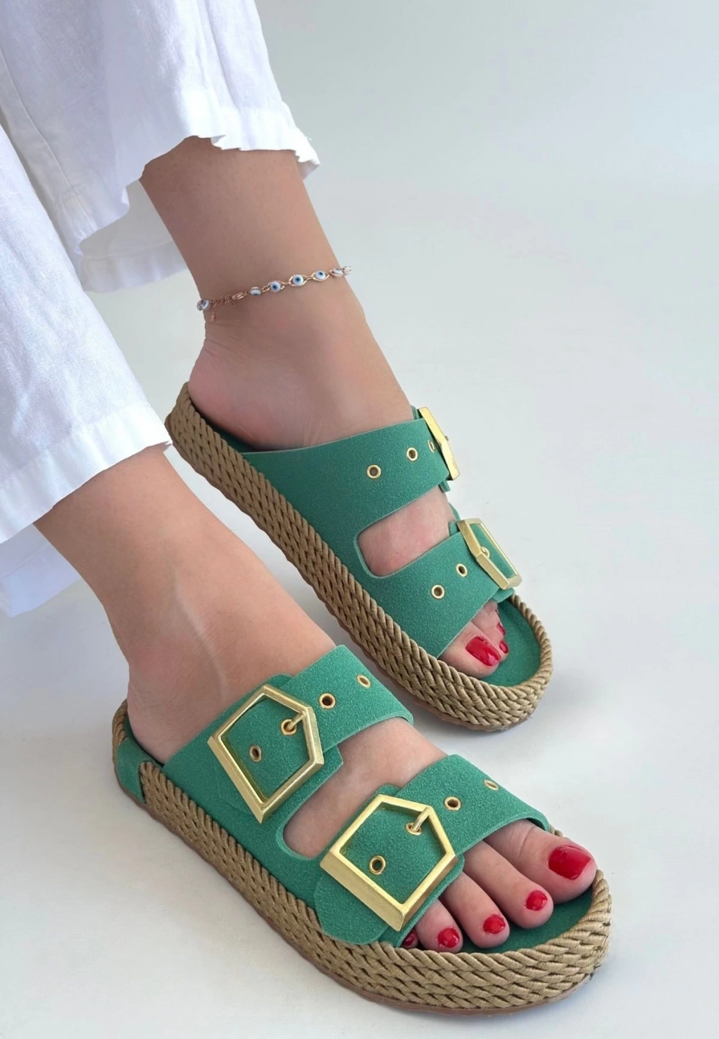TAVSİYE EDİLEN GÜVENLİ SATICI İces Yeşil Nubuk Terlik