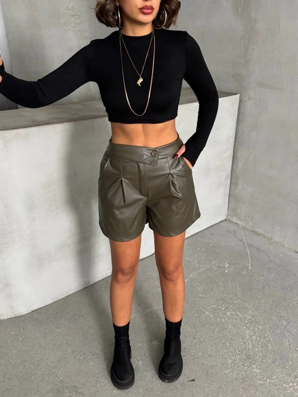 • İki düğmeli pileli şort