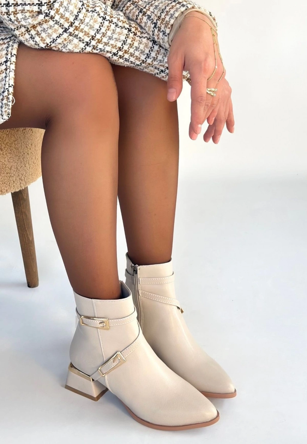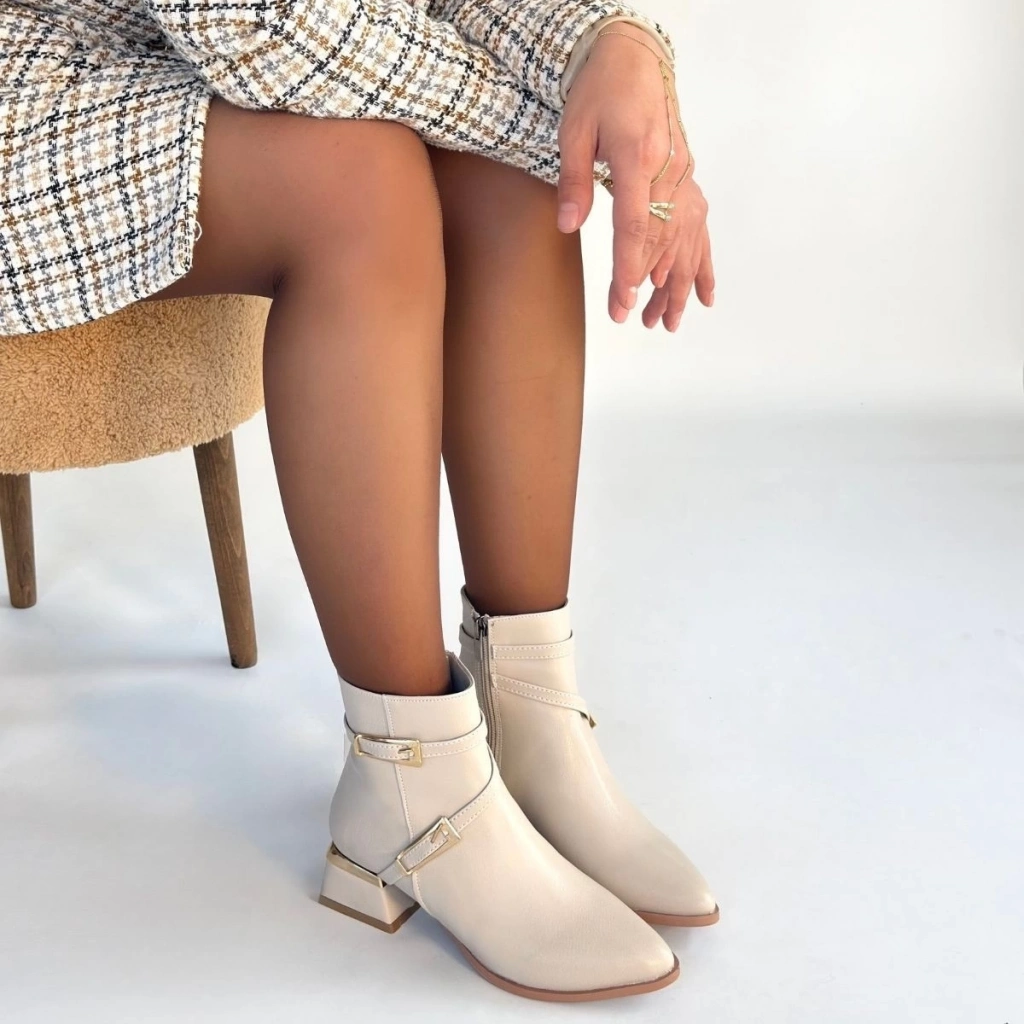 • İnay Bej Cilt Topuklu Bot