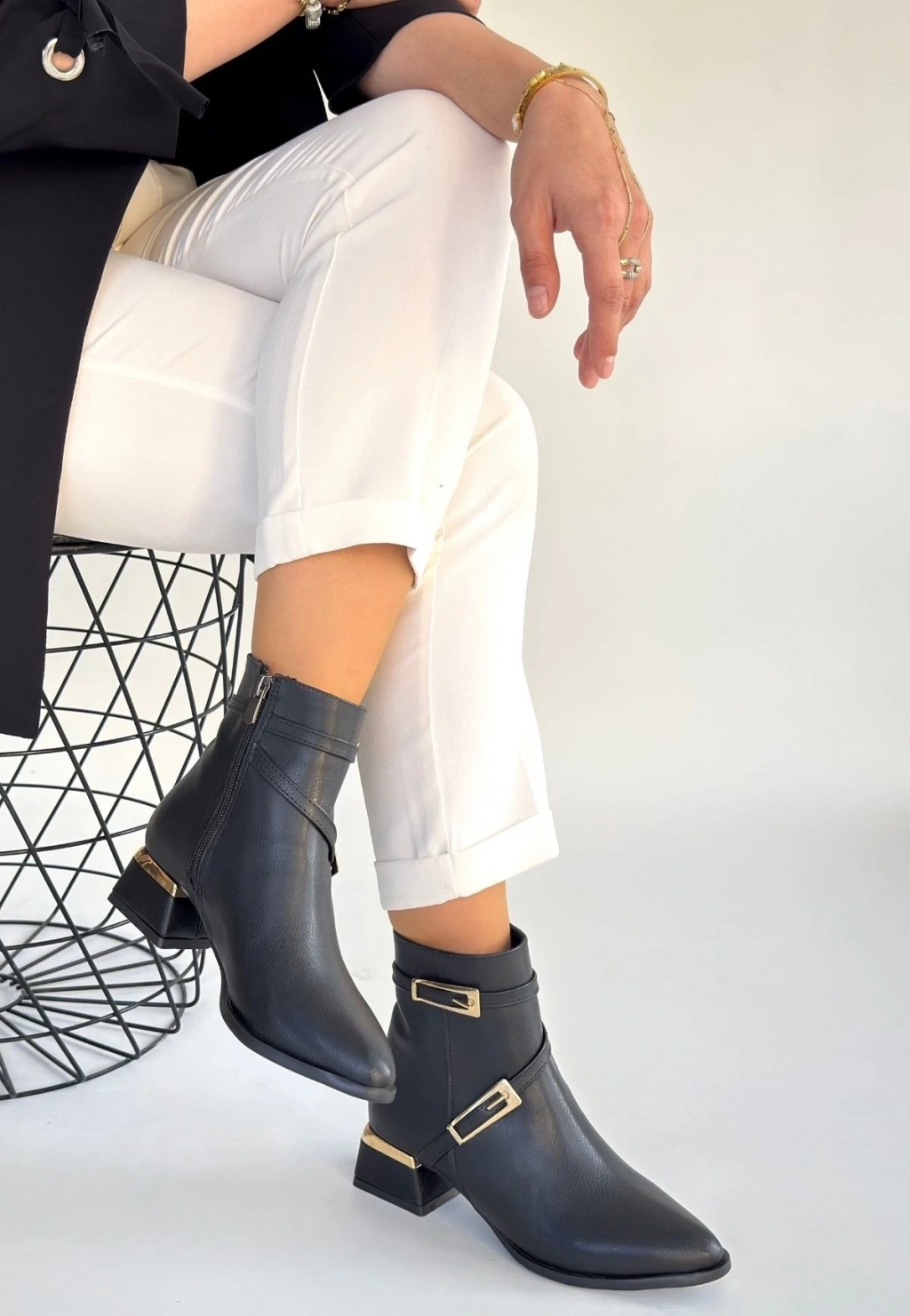 ÇOK SATAN İnay Siyah Cilt Topuklu Bot