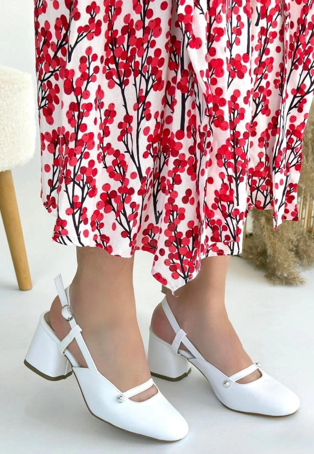 • Jecci Beyaz Cilt Topuklu Ayakkabı