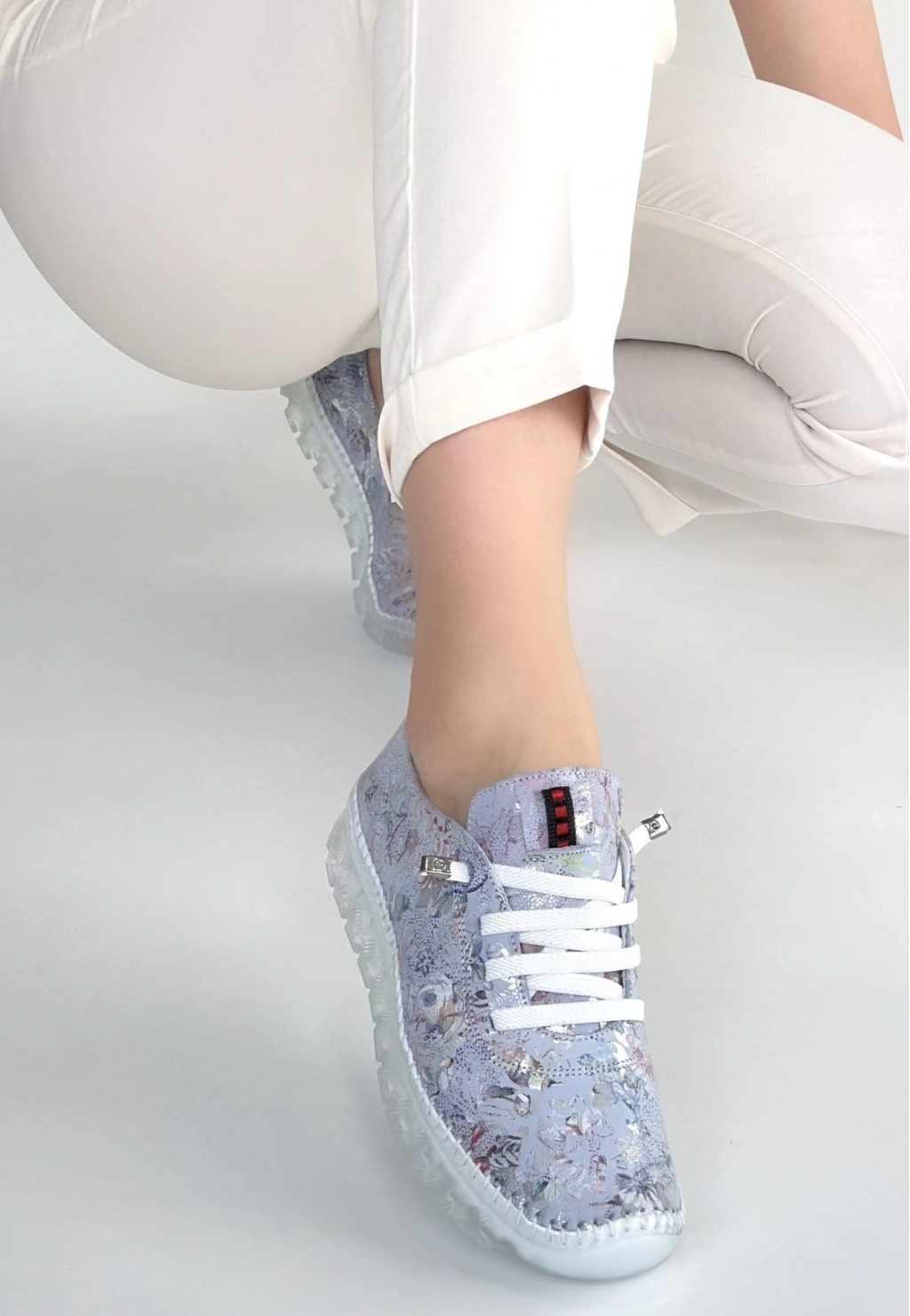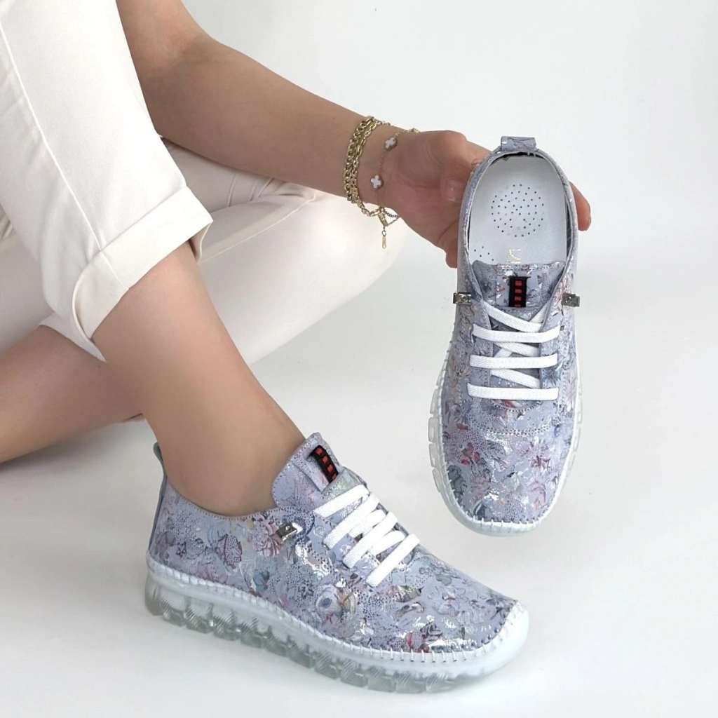 Kinte Lila Desenli Deri Bağcıklı Spor Ayakkabı