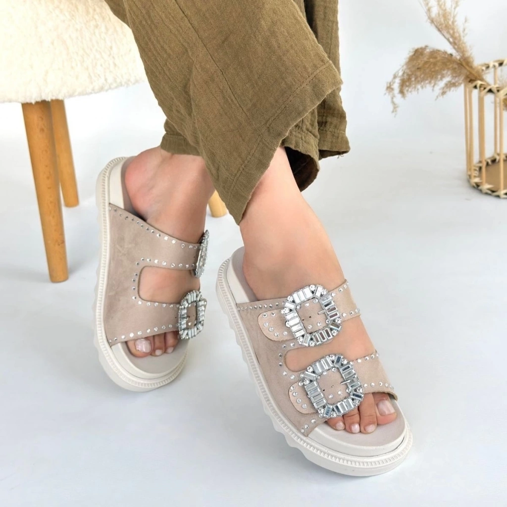 TAVSİYE EDİLEN GÜVENLİ SATICI Juana Bej Nubuk Taşlı Terlik