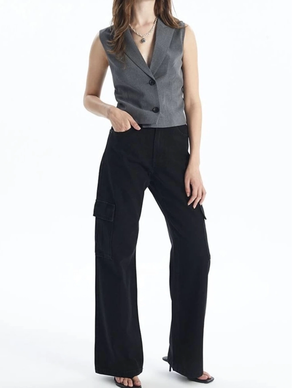 Kargo cep detaylarıyla şıklığı bir araya getiren Siyah Kadın Jeans Pantolon, tarzınızı yansıtacak vazgeçilmez bir parça olmaya aday!