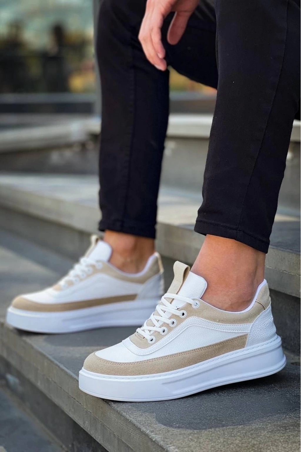 KB-006 Beyaz Cilt Bej Süet Yüksek Taban Bağcıklı Günlük Erkek Ayakkabı
