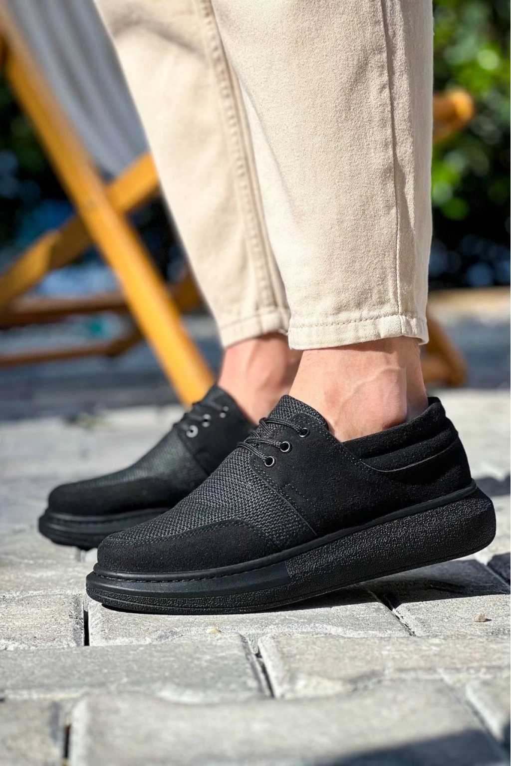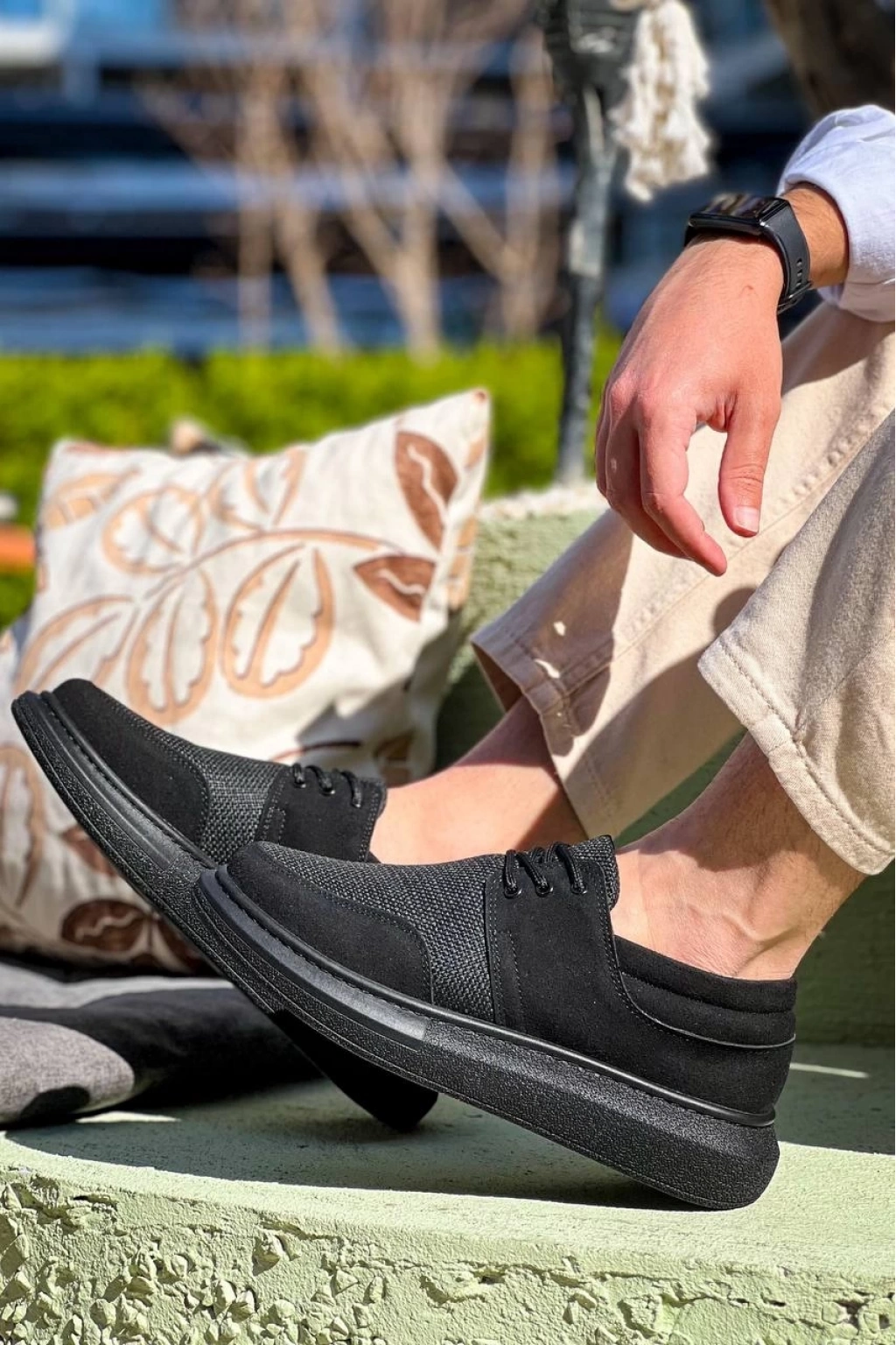 KB-042 Bağcıklı Siyah Deri Tozu Siyah Taban Günlük Erkek Ayakkabı