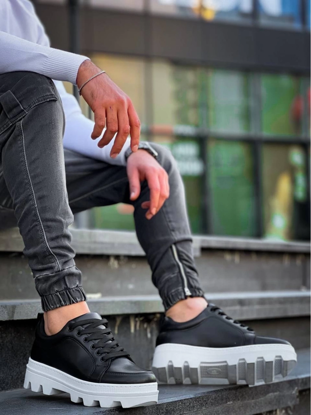 KB-056 Siyah Cilt Beyaz Yüksek Taban Günlük Spor Ayakkabı