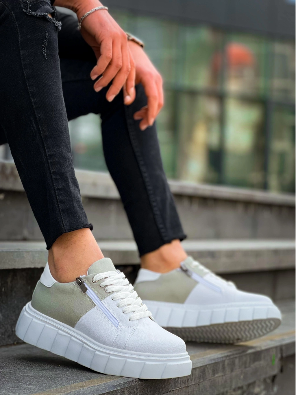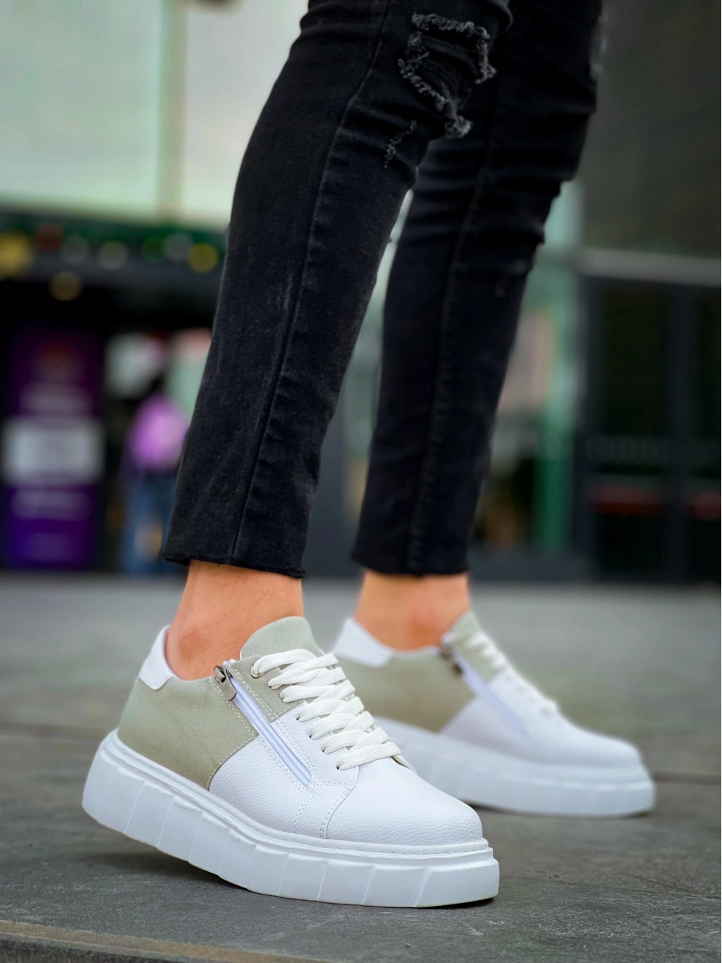 KB-X155 Beyaz Cilt Gri Süet Detaylı Beyaz Yüksek Taban Günlük Spor Ayakkabı