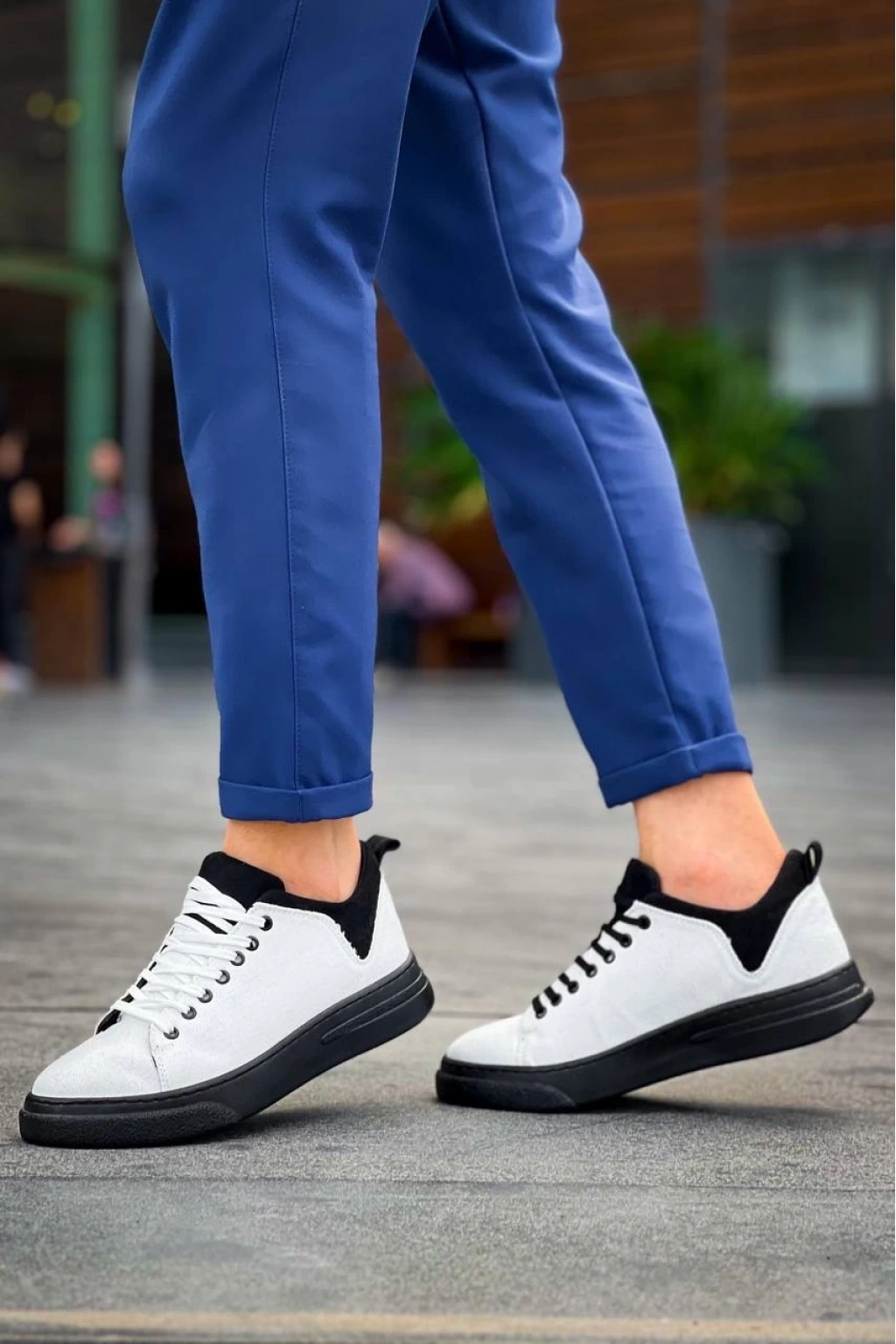 KB-X204 Beyaz Siyah Keten Siyah Yüksek Taban Günlük Erkek Spor Ayakkabı