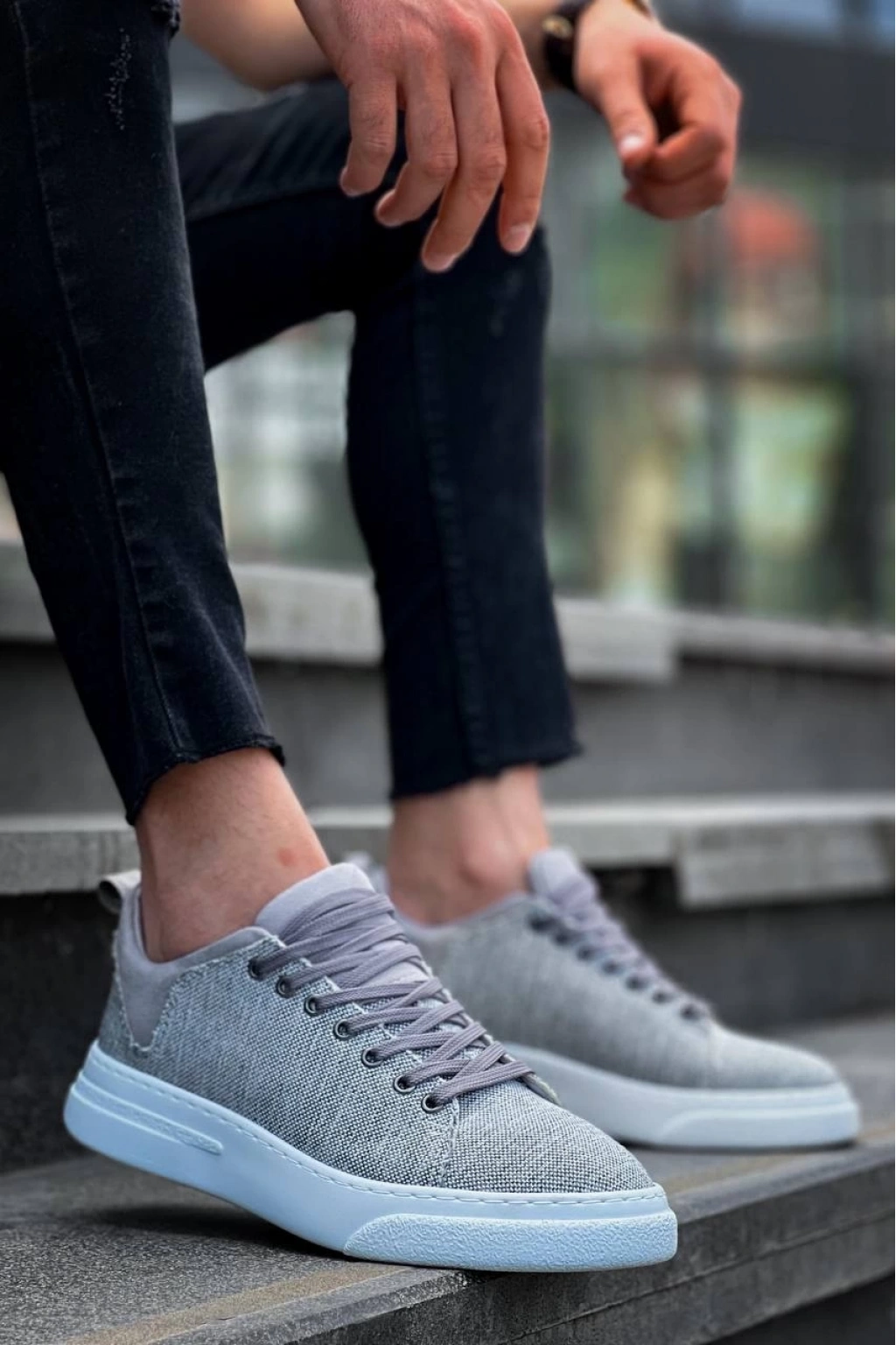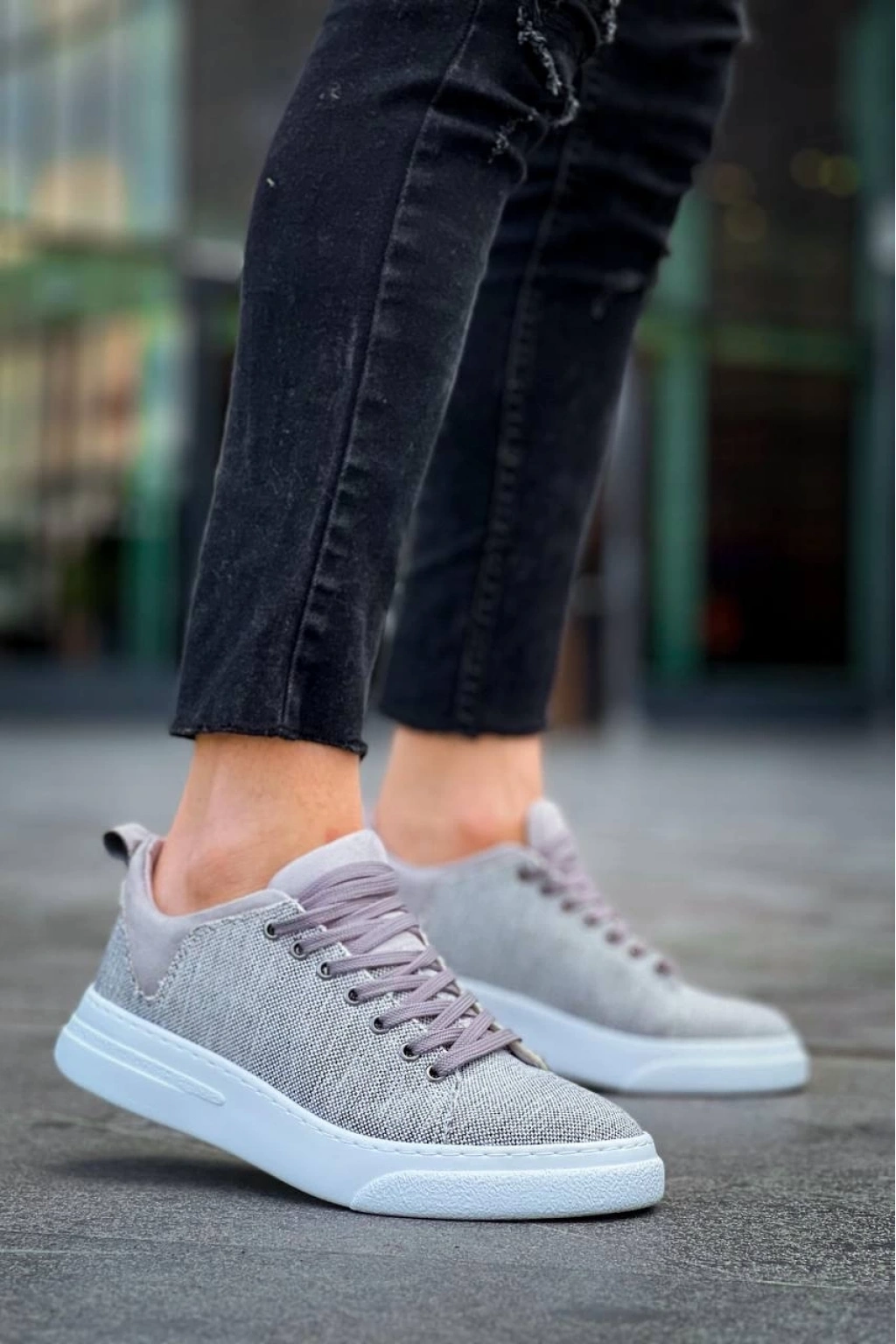 KB-X204 Gri Keten Beyaz Yüksek Taban Günlük Erkek Spor Ayakkabı