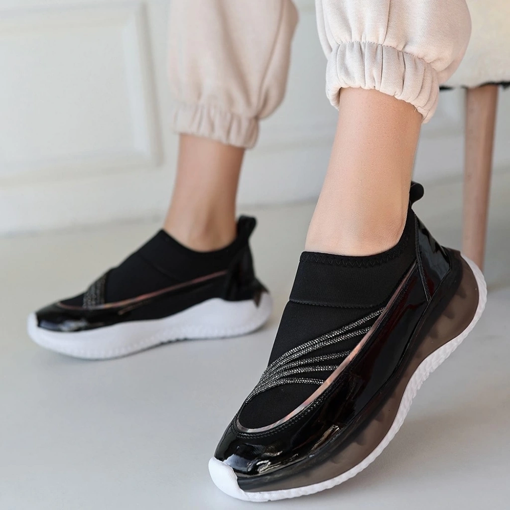 TAVSİYE EDİLEN GÜVENLİ SATICI Keita Siyah Rugan Streç Detaylı Spor Ayakkabı