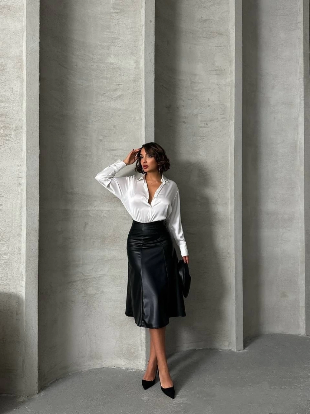 Şıklığı ön planda tutan Komple parçalı deri eteği, gece davetlerinden günlük şıklığa kadar birçok farklı kombinle kullanabilirsiniz.