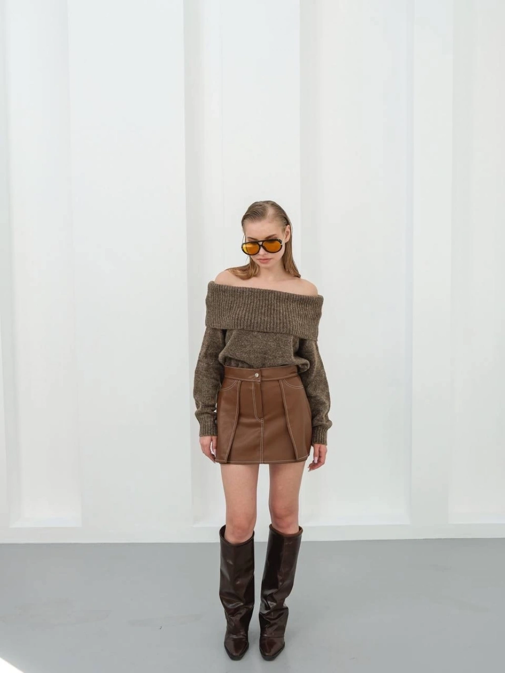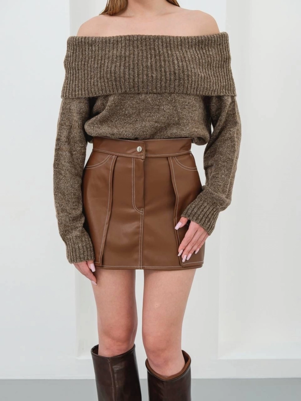 TAVSİYE EDİLEN GÜVENLİ SATICI Kontrast deri etek kahve w260015