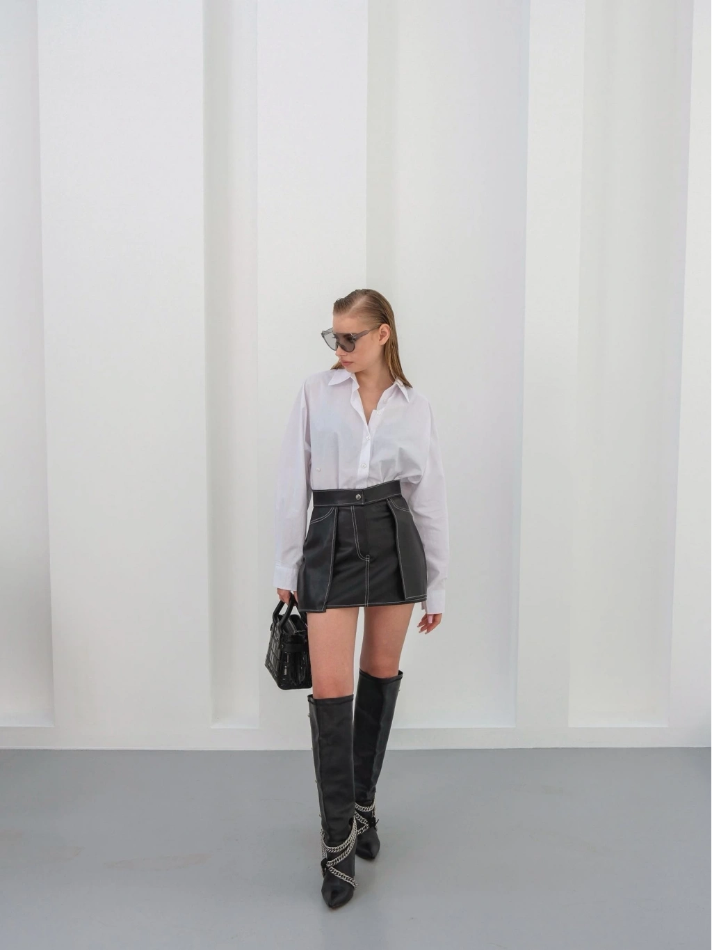 Şıklığı ve tarzı bir arada sunan Kontrast Deri Etek ile farkınızı ortaya koyun. Siyah rengiyle her kombinde rahatlıkla kullanabileceğiniz bu etek, şık görünümüyle göz dolduruyor.