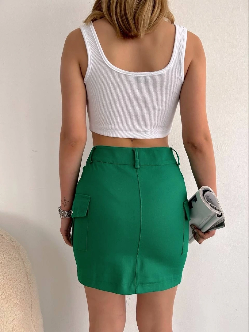 Şıklığı ve konforu bir arada arayan kadınların tercihi olan körüklü cep etek yeşil s24904, tarzınızı yansıtmak için ideal bir seçenektir.