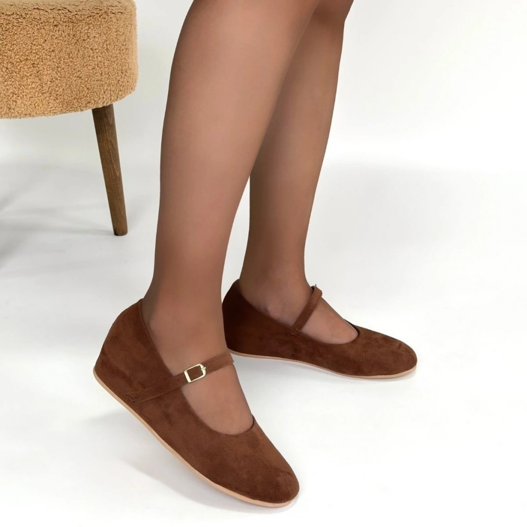Lossa Taba Süet Kemerli Babet Ayakkabı