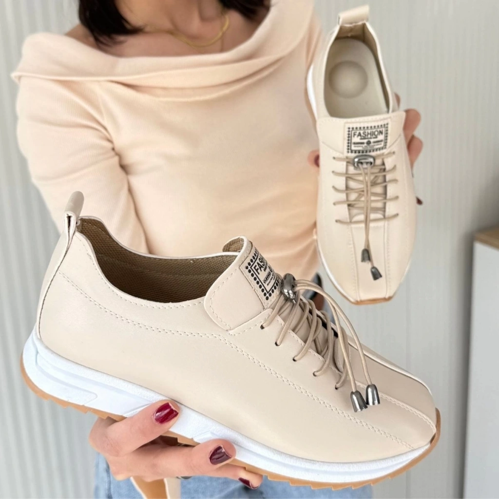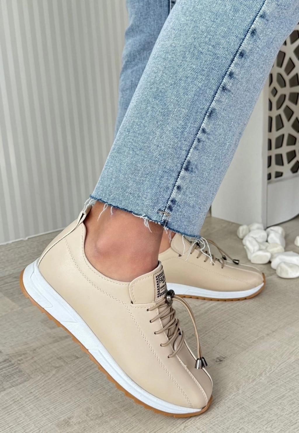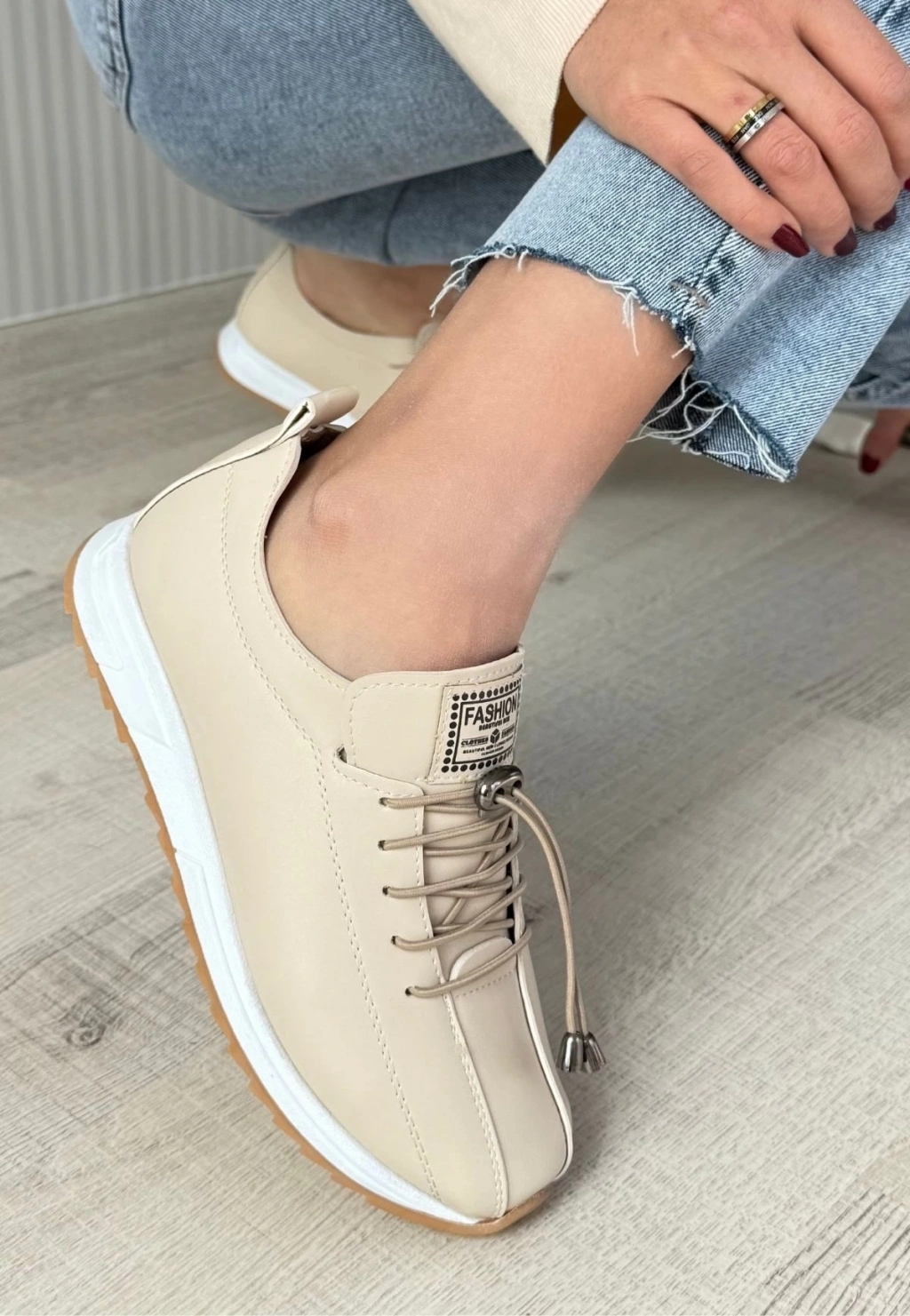 TAVSİYE EDİLEN GÜVENLİ SATICI Monya Bej Cilt Bağcıklı Spor Ayakkabı