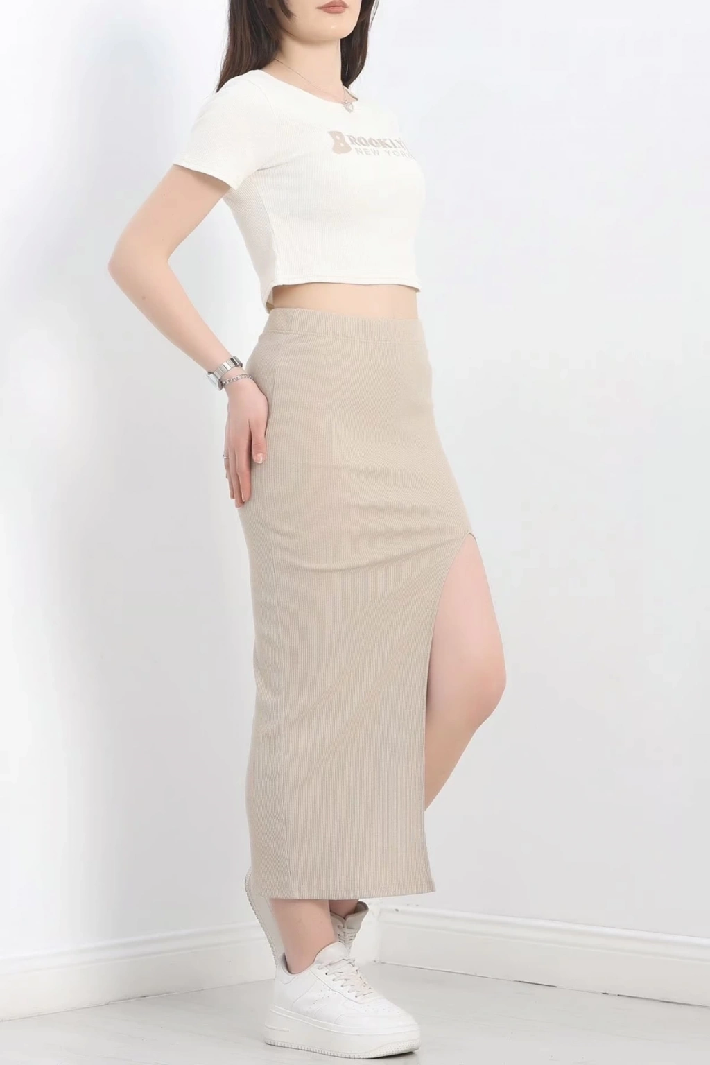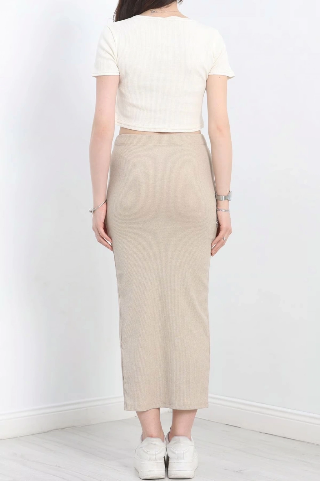 Nakışlı etekli takım bej beyaz s3899