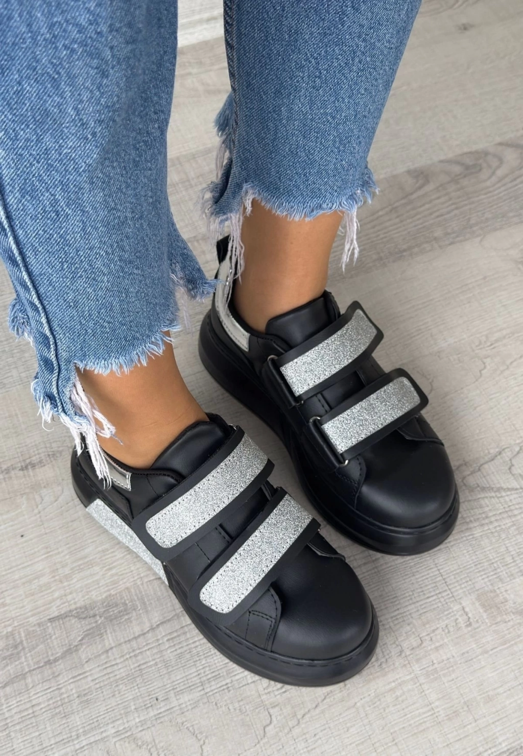 • Nino Siyah Cilt Simli Cırt Cırtlı Spor Ayakkabı