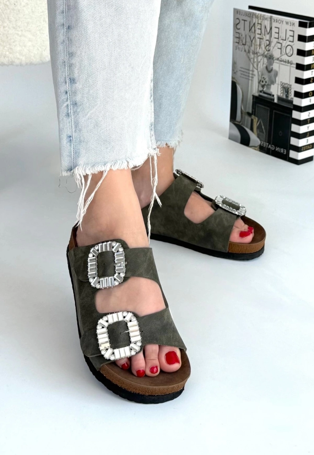 TAVSİYE EDİLEN GÜVENLİ SATICI Nool Yeşil Nubuk Terlik