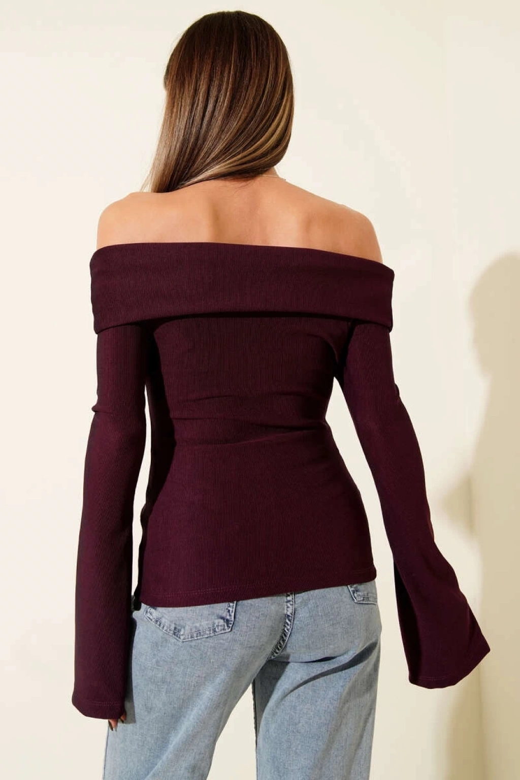 Omzu Açık Fermuarlı Bluz Mürdüm T4330, gardırobunuzun vazgeçilmezi olmaya aday!