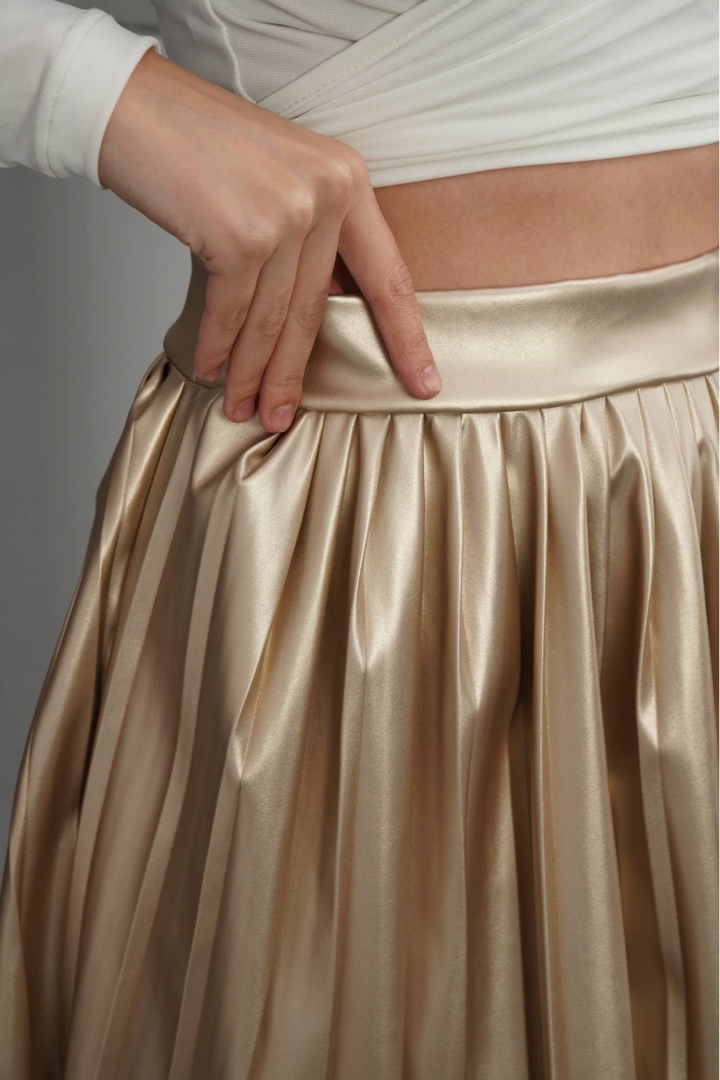 Piliseli deri etek gold h261564, şıklığı ve tarzı bir arada sunan bir parçadır.