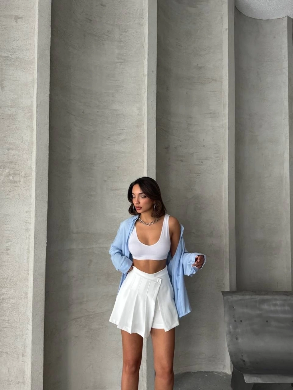 Bu beyaz piliseli düğmeli şort etek, yaz aylarında şıklığı ve rahatlığı bir arada arayan kadınların vazgeçilmezi olacak. İster günlük şıklıkta isterseniz özel bir davette tercih edebileceğiniz bu şort etek, gardırobunuzun en favori parçalarından biri olmaya aday.
