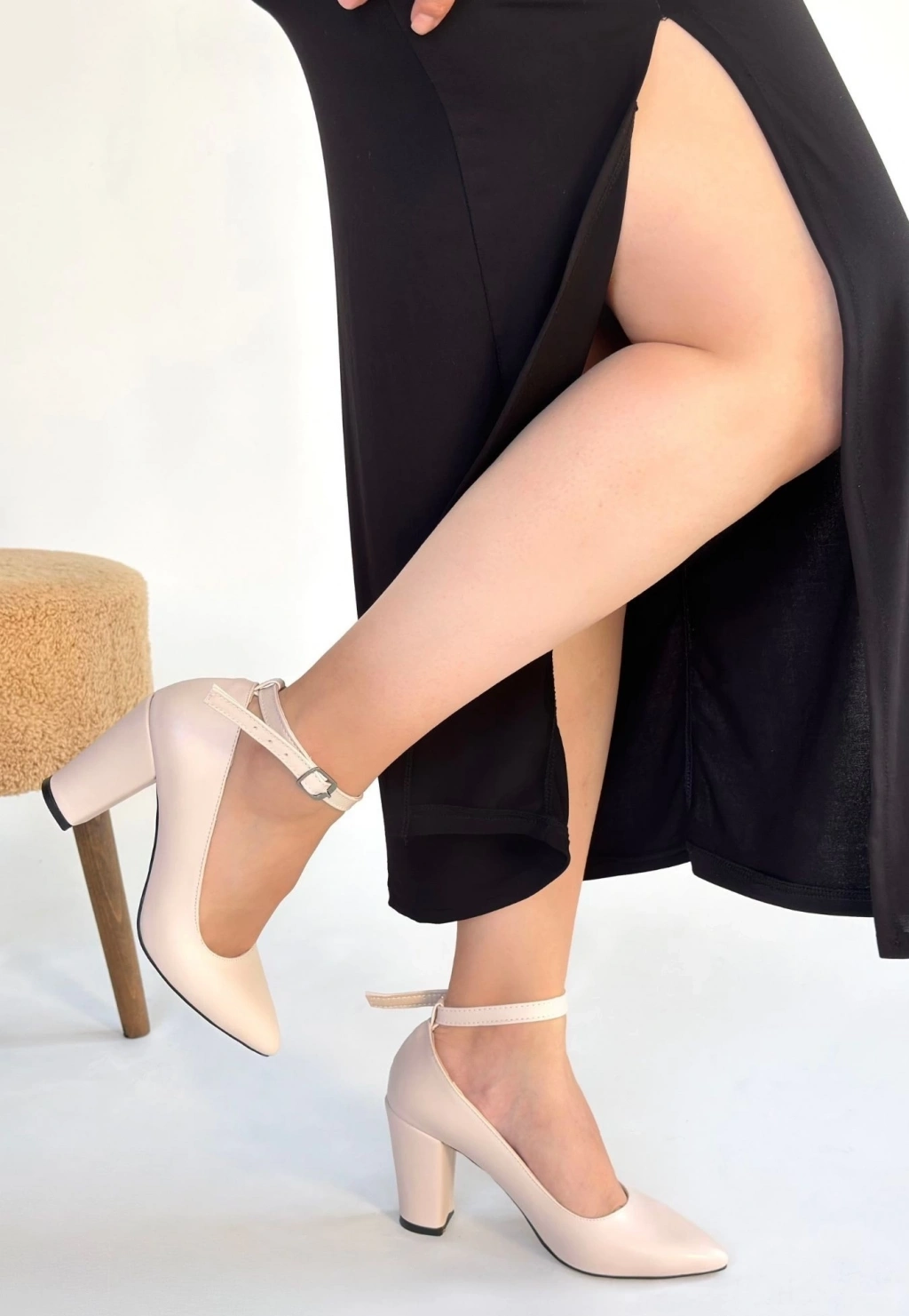 ÇOK SATAN Rity Bej Cilt Topuklu Ayakkabı