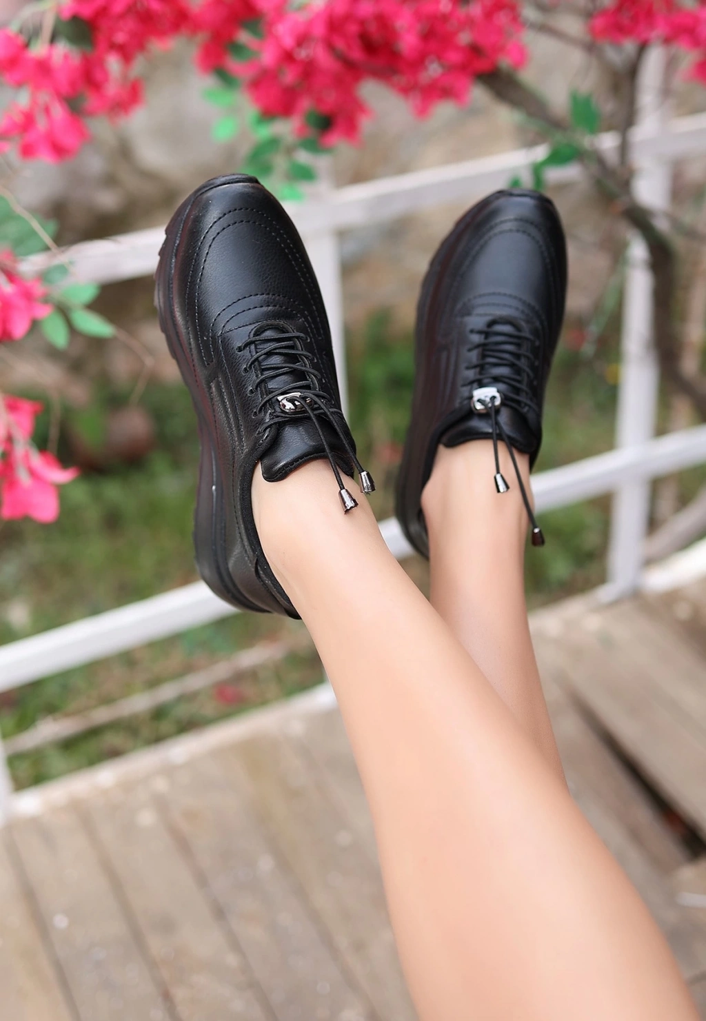 TAVSİYE EDİLEN GÜVENLİ SATICI Romy Siyah Cilt Bağcıklı Spor Ayakkabı