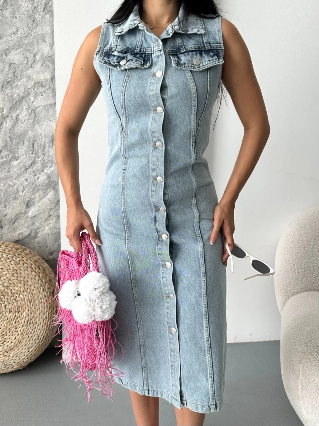 - Sıfır kol tasarımıyla dikkat çeker.
