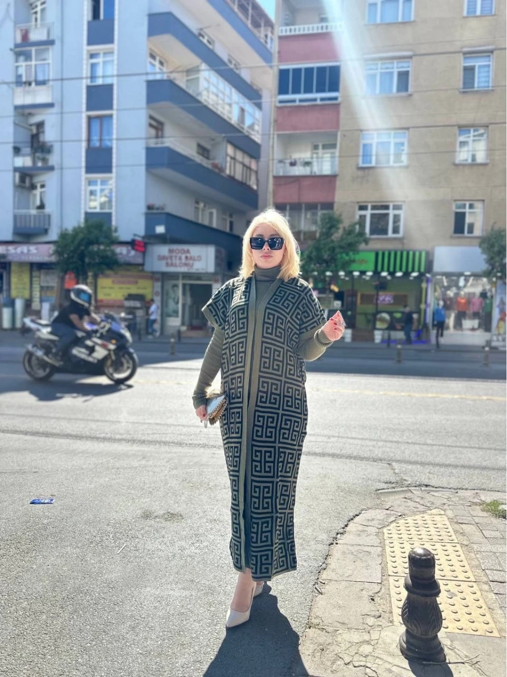 - Desenli elbise ve uyumlu hırka ile kombin tamamlayıcıdır.