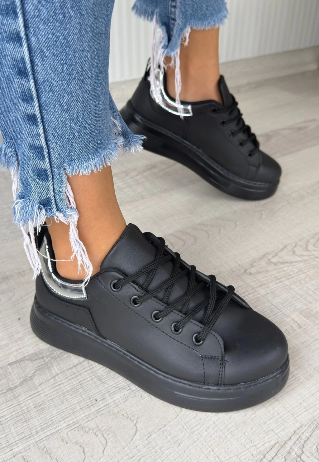 Sofio Siyah Cilt Bağcıklı Spor Ayakkabı