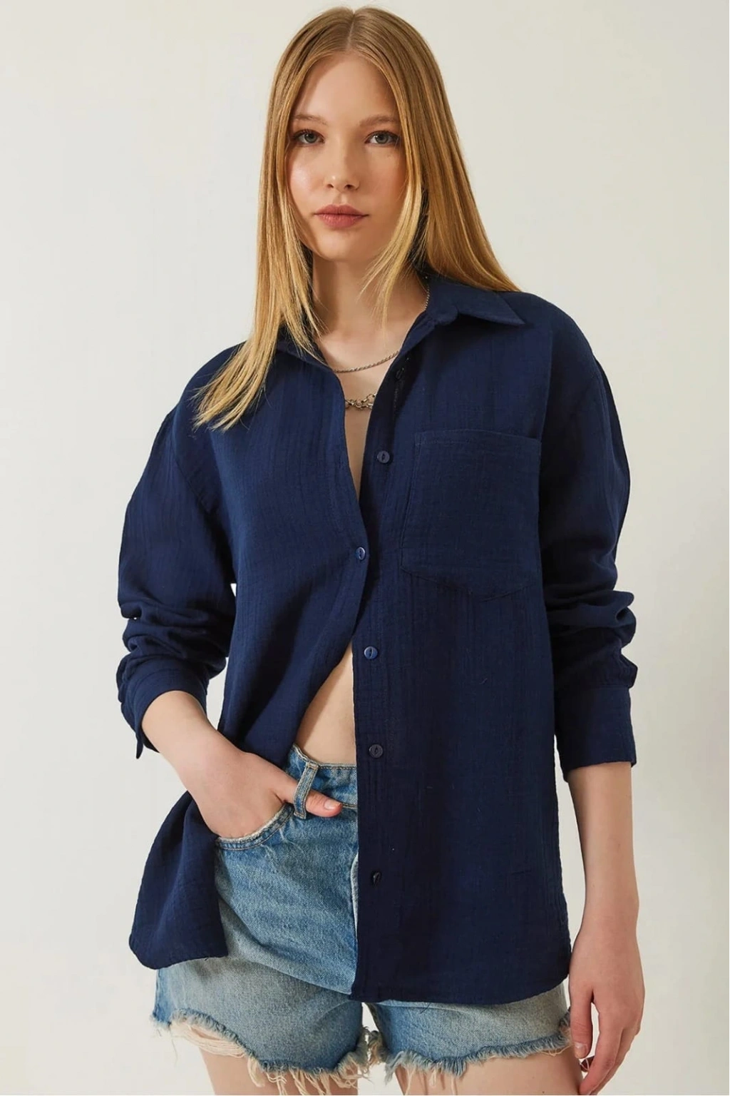 Şıklığı ve rahatlığı bir arada sunan Tek Cep Müslin Gömlek Mavi, gardırobunuzun vazgeçilmez parçalarından biri olmaya aday. Detaylı dikişleri ve kaliteli kumaşı ile gün boyu konfor sağlar.