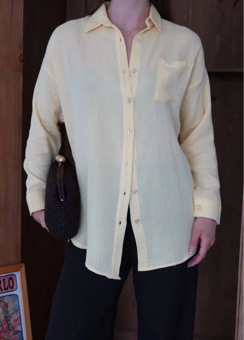 - Sarı rengiyle dikkat çeken gömlek, yaz aylarında ferah ve şık bir görünüm sunar.