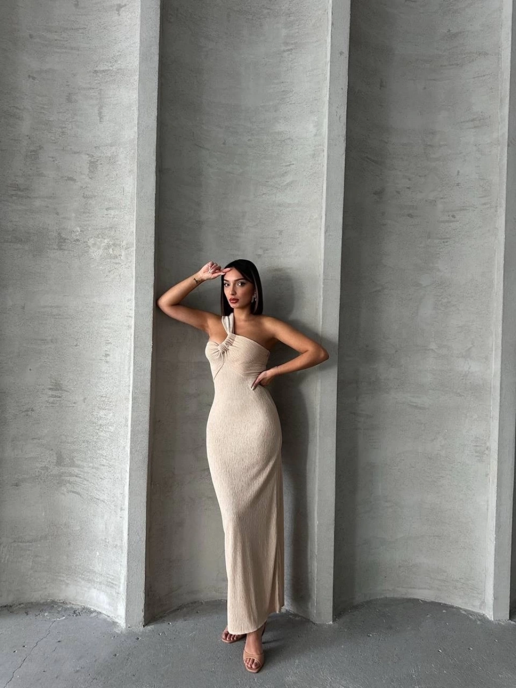 KAZAX tek omuz pliseli elbise ile her şıklık olaya hazırsınız!