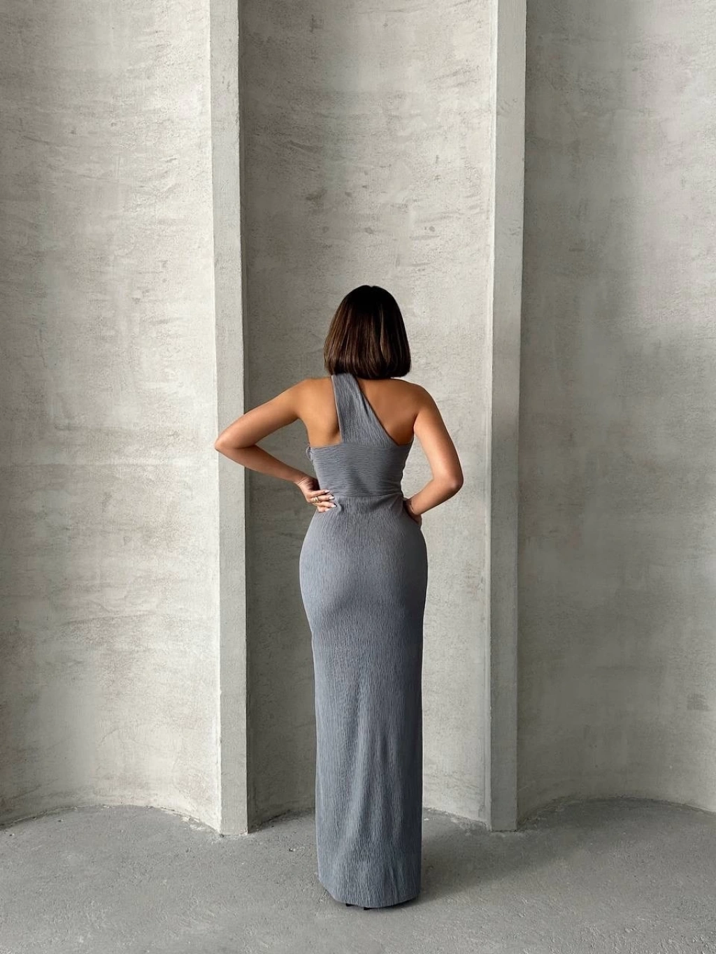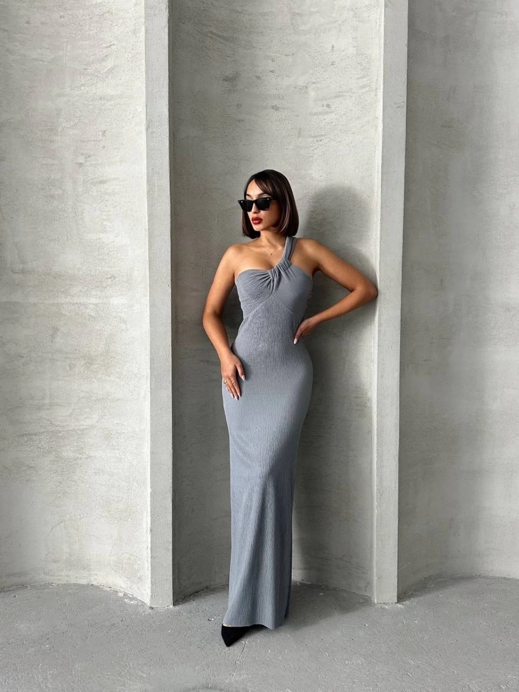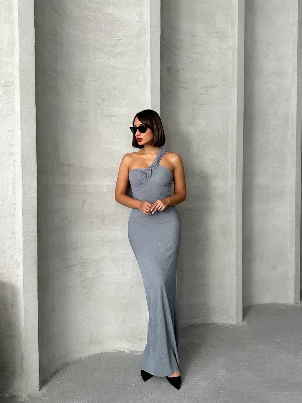 TAVSİYE EDİLEN GÜVENLİ SATICI Tek omuz pliseli elbise