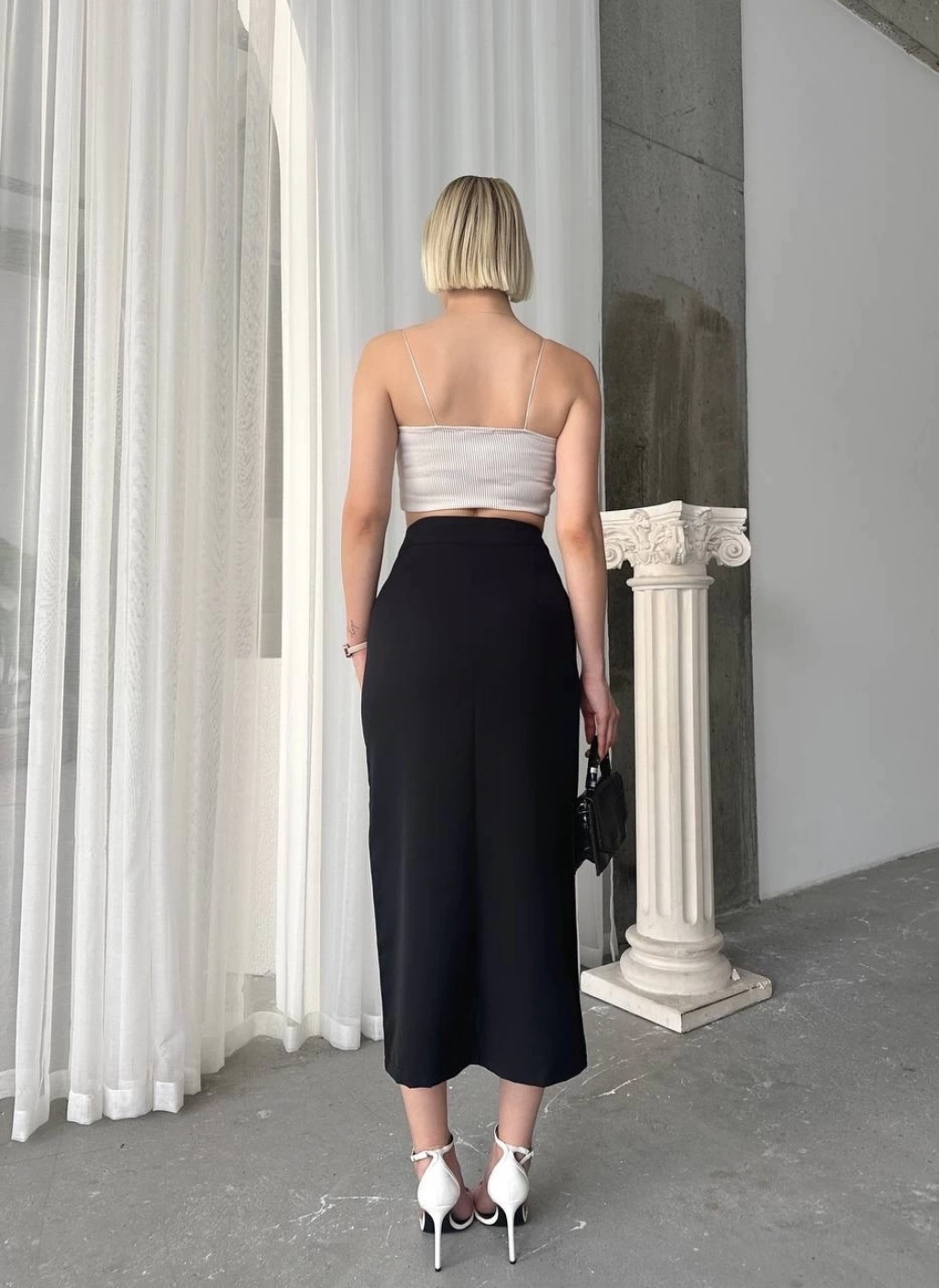 ÇOK SATAN Midi boy deri kalem etek siyah h26780