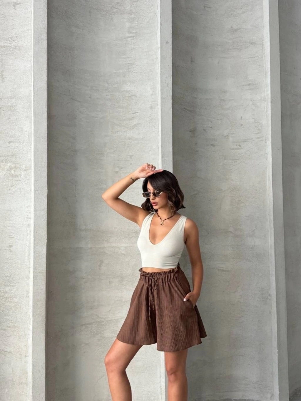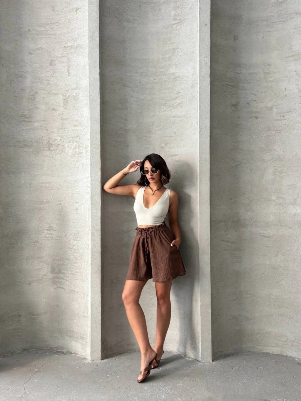 Bu yazın favori parçalarından biri olan Volanlı Keten Şort Kahve S255058, şıklığı ve rahatlığı bir arada sunuyor. İster günlük kombinlerde ister şık akşam davetlerinde tercih edebileceğiniz bu şort, gardırobunuzun vazgeçilmezi olmaya aday.