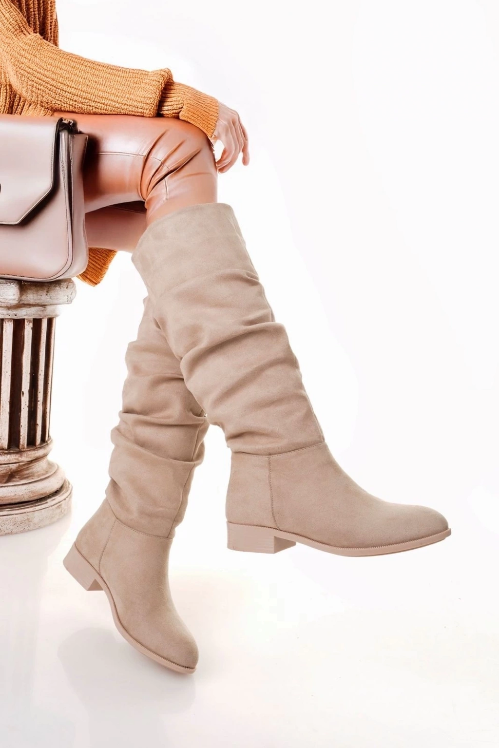 TAVSİYE EDİLEN GÜVENLİ SATICI Winda Bej Süet Körüklü Çizme