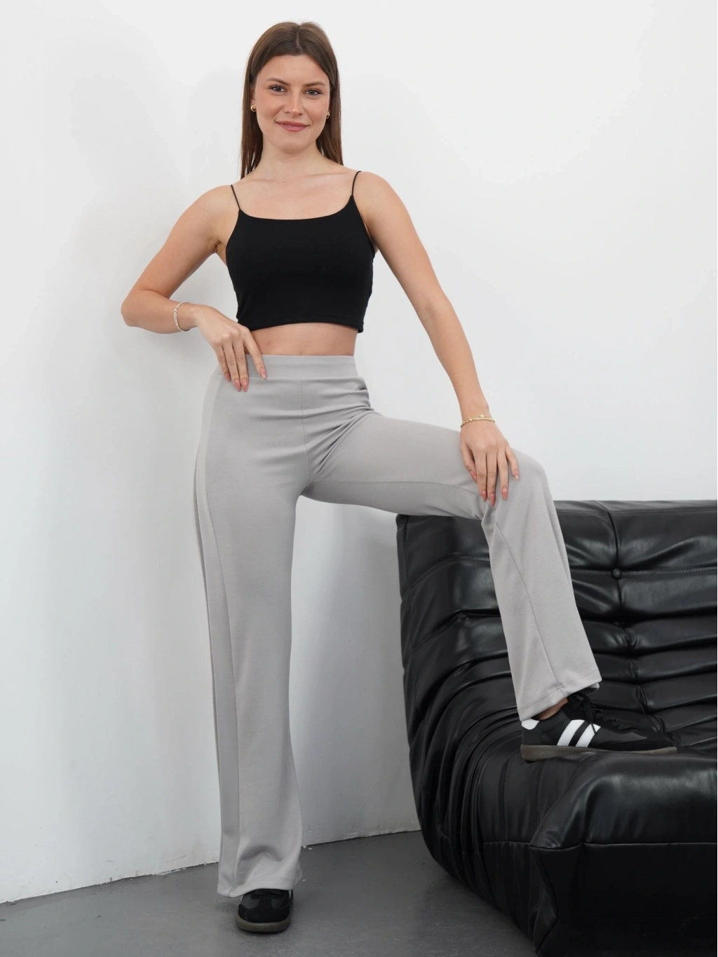 yandan katlamalı pantolon, şıklığı ve rahatlığı bir arada sunar. Her stile ve her duruma kolayca uyum sağlayabilen gri rengi, gardırobunuzun vazgeçilmezi olmaya aday.