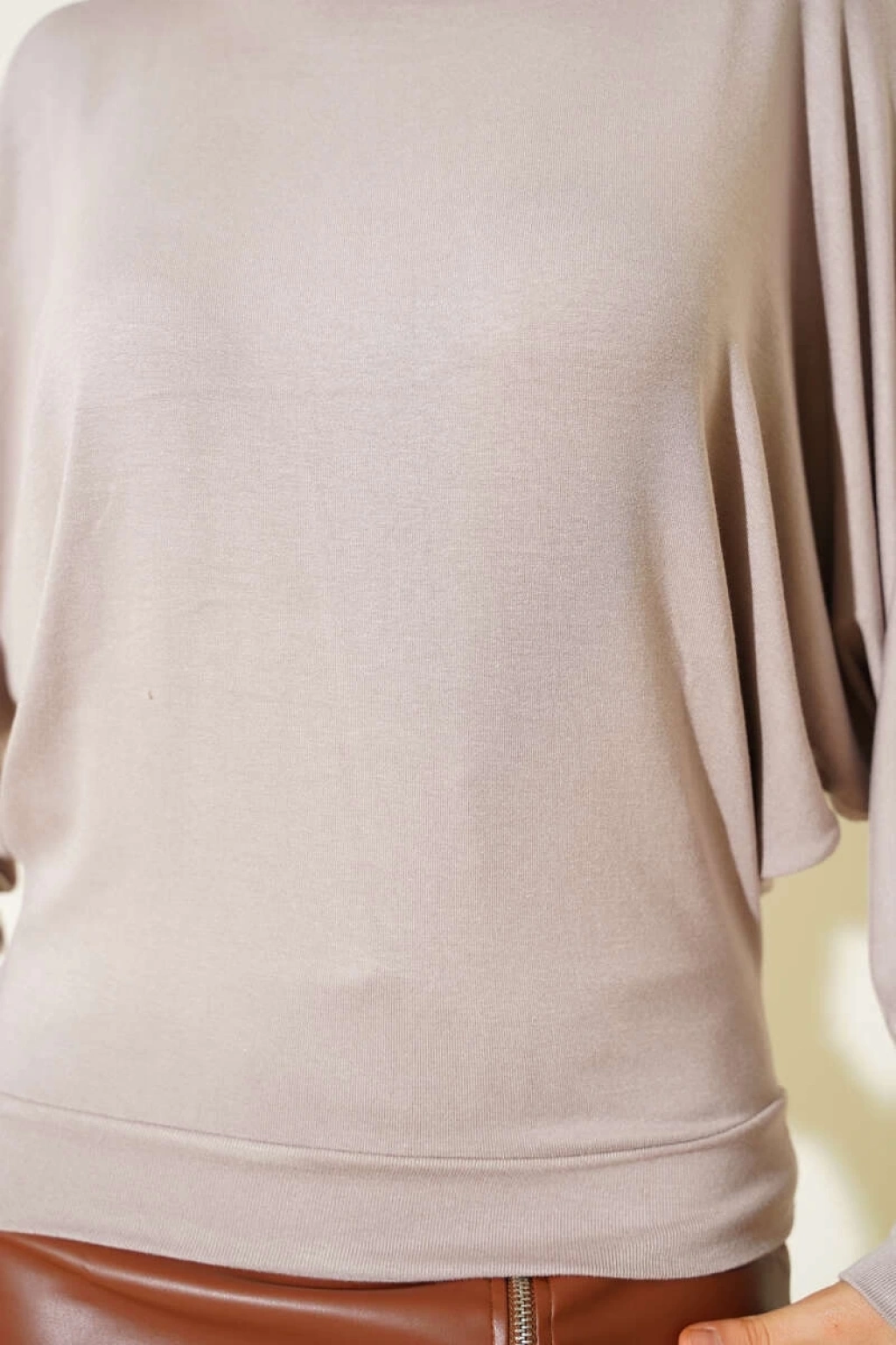 ÇOK SATAN Yarasa Kol Salaş Bluz Vizon T4273