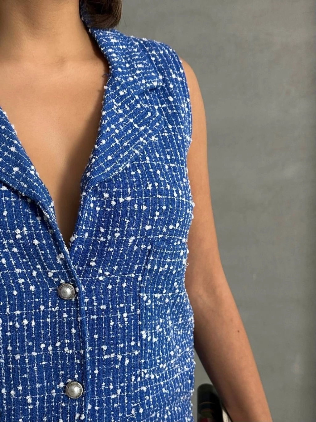 • Yelekli şort takım saks