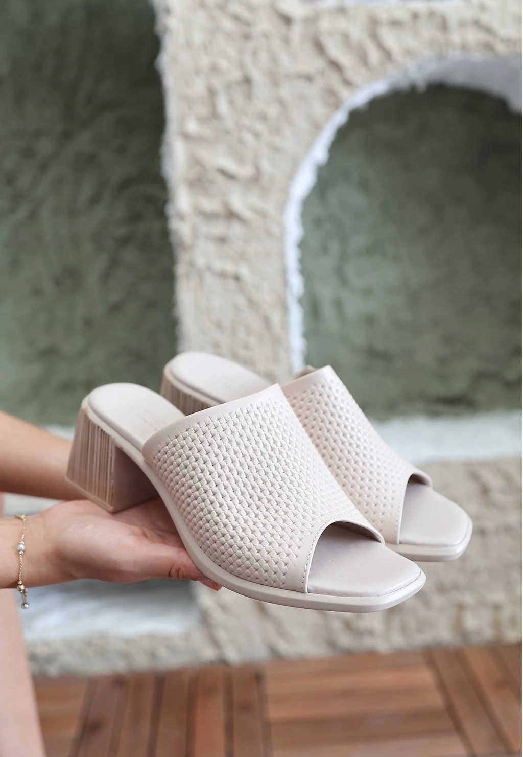 Zanna Bej Cilt Topuklu Terlik